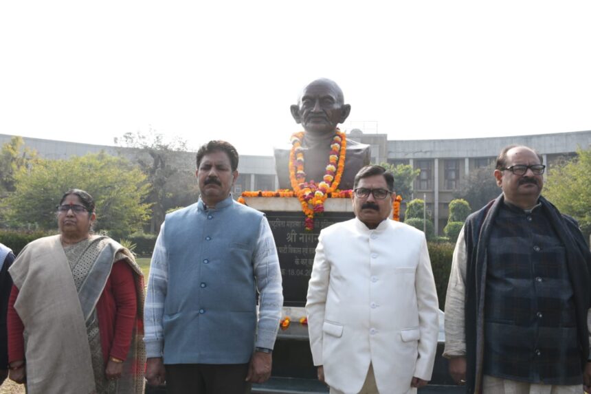 चित्रकूट. महात्मा गांधी चित्रकूट ग्रामोदय विश्वविद्यालय के शाश्वत प्रेरणा श्रोत और राष्ट्रपिता महात्मा गांधी की पुण्य तिथि ग्रामोदय विश्वविद्यालय परिसर स्थित प्रशासनिक भवन में पूरी निष्ठा और आस्था के साथ मनाई गई।