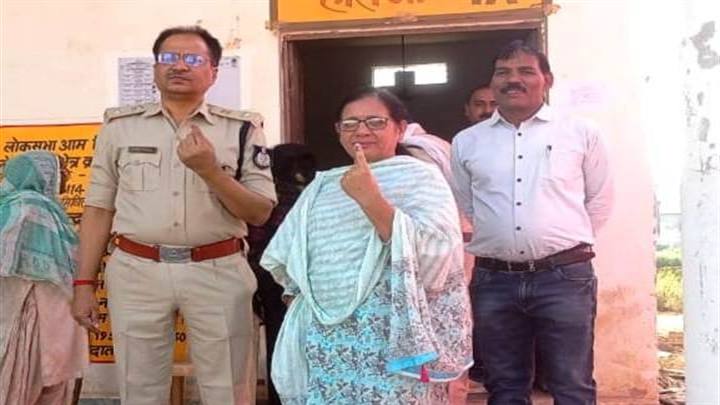 कलेक्टर एवं पुलिस अधीक्षक ने आदर्श महिला मतदान केंद्र में डाला अपना वोट